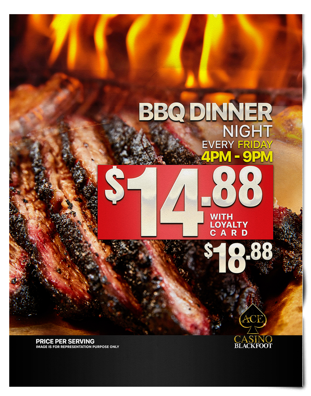 The ACE Casino Blackfoot Restaurant & Dining Area features everyday food specials including our signature Wednesday Prime Rib Special, drink specials at the bar, and big screens for all the biggest sports events, including UFC.