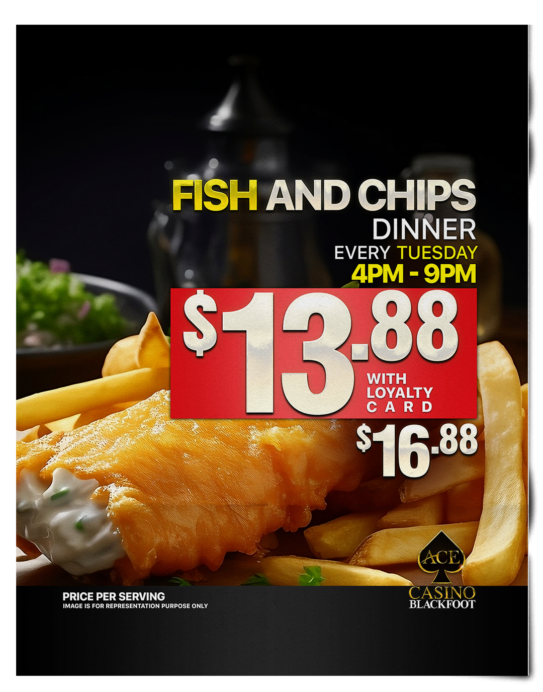 The ACE Casino Blackfoot Restaurant & Dining Area features everyday food specials including our signature Wednesday Prime Rib Special, drink specials at the bar, and big screens for all the biggest sports events, including UFC.